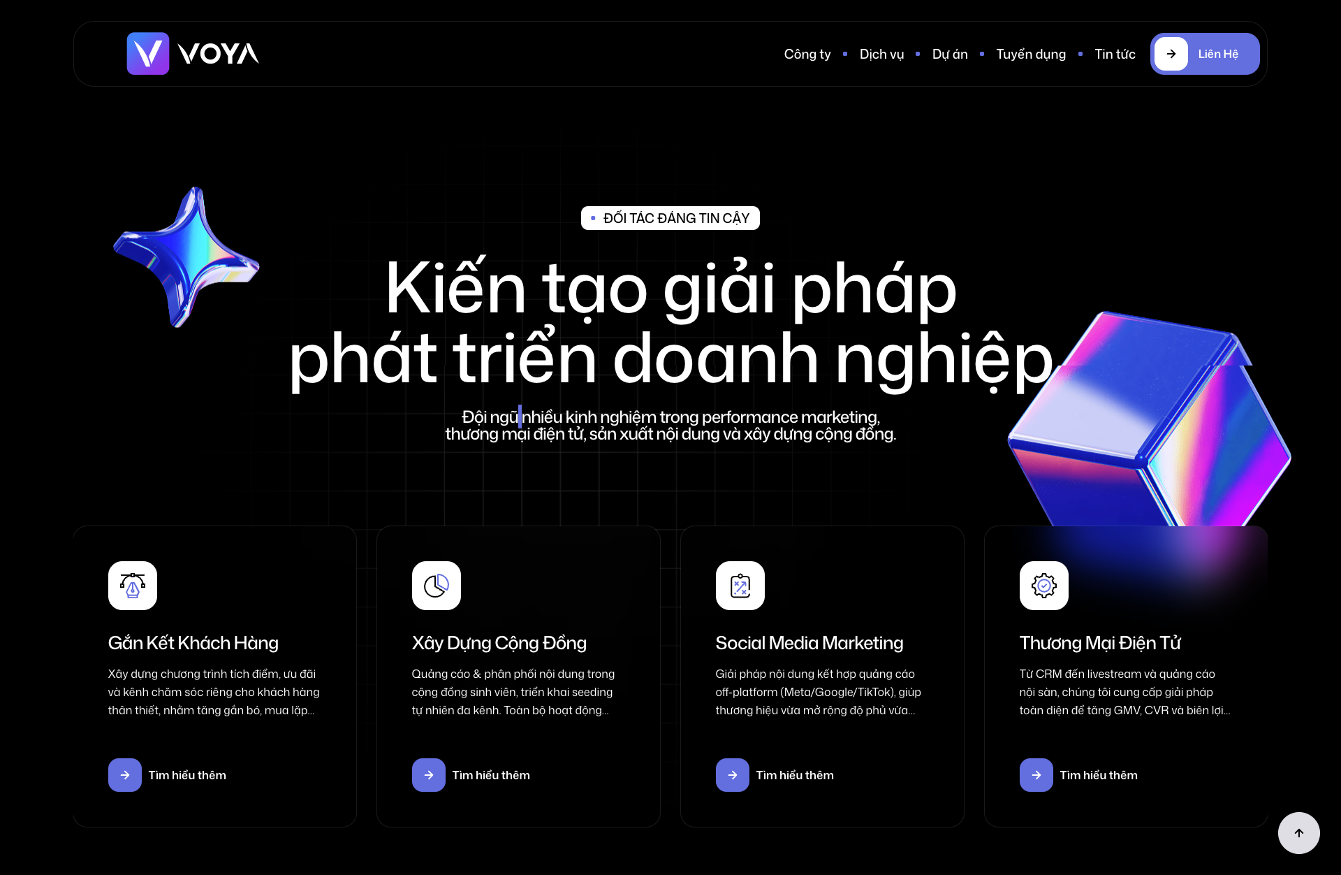 Với sự tin tưởng của hơn 500+ khách hàng và các đối tác lớn như Viettel, Lazada, VOYA tập trung vào việc thiết kế các giải pháp "may đo" phù hợp với từng giai đoạn phát triển của doanh nghiệp.
